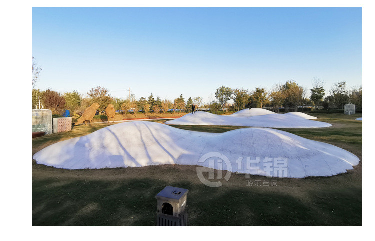 2、蹦蹦云是永久固定在沙土地面上的,不惧风雨等恶略天气。远看是景观,踩上是蹦床,蹦蹦云的景观和游乐双重属性让它适合多种使用环境,涵盖景区公园、农业采摘园、休闲农庄、农家乐、生态园、观光园、度假村、游乐园、特色小镇、房地产景观等大型室外开放式亲子互动游乐设施的需要。