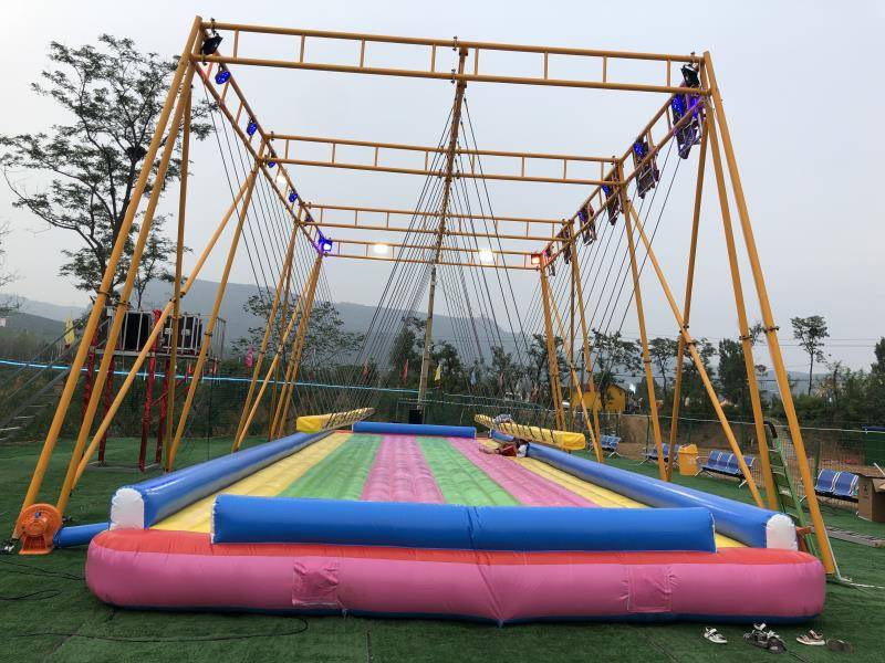 郑州网红桥是由桥墩,桥身,以及桥下面的保护措施构成。桥墩一般是由方钢焊制而成。桥身是由两根钢丝绳固定在桥墩上,桥面上铺设木板并用卡扣固定,桥面下面的保护措施一般是充气气垫。充气气垫和木板做成不一样的颜色,组装好之后就是一个郑州网红桥的样子了。郑州网红桥游玩技巧非常简单,只需要站在上面左右摇摆就可以了。